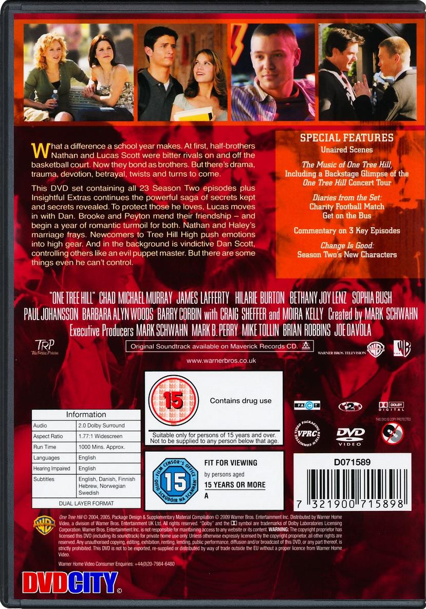 | Beskrivelse: [ Dansk Engelsk ] Meget kan ske på et skoleår. Først var halvbrødrene Nathan og Lucas Scott bitre rivaler på og uden for basketballbanen. Nu opfører de sig som brødre. Men der er drama, traumer, hengivelse, forræderi og masser af twists på vej. I denne DVD-boks med alle 23 afsnit i 2. sæson samt nærgående ekstra materiale fortsætter den stærke historie om skjulte og afslørede hemmeligheder. Lucas flytter ind hos Dan for at beskytte dem, han holder af. Brooke og Peyton bliver gode venner igen og tager hul på et år med romantiske forviklinger for dem begge. Nathan og Haleys ægteskab er slidt i kanten. Nye elever på Tree Hill High sætter følelserne i kog. Og i baggrunden lurer hævnlystne Dan Scott, der styrer folk som en anden diktator. Men nogle ting kan end ikke han styre.