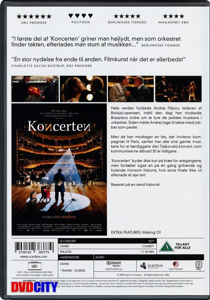"Koncerten" byder ikke kun på kræs for øregangene, men fortæller også en på én gang gribende og hylende morsom historie, hvis store finale ikke vil efterlade ét tørt øje i biografen.