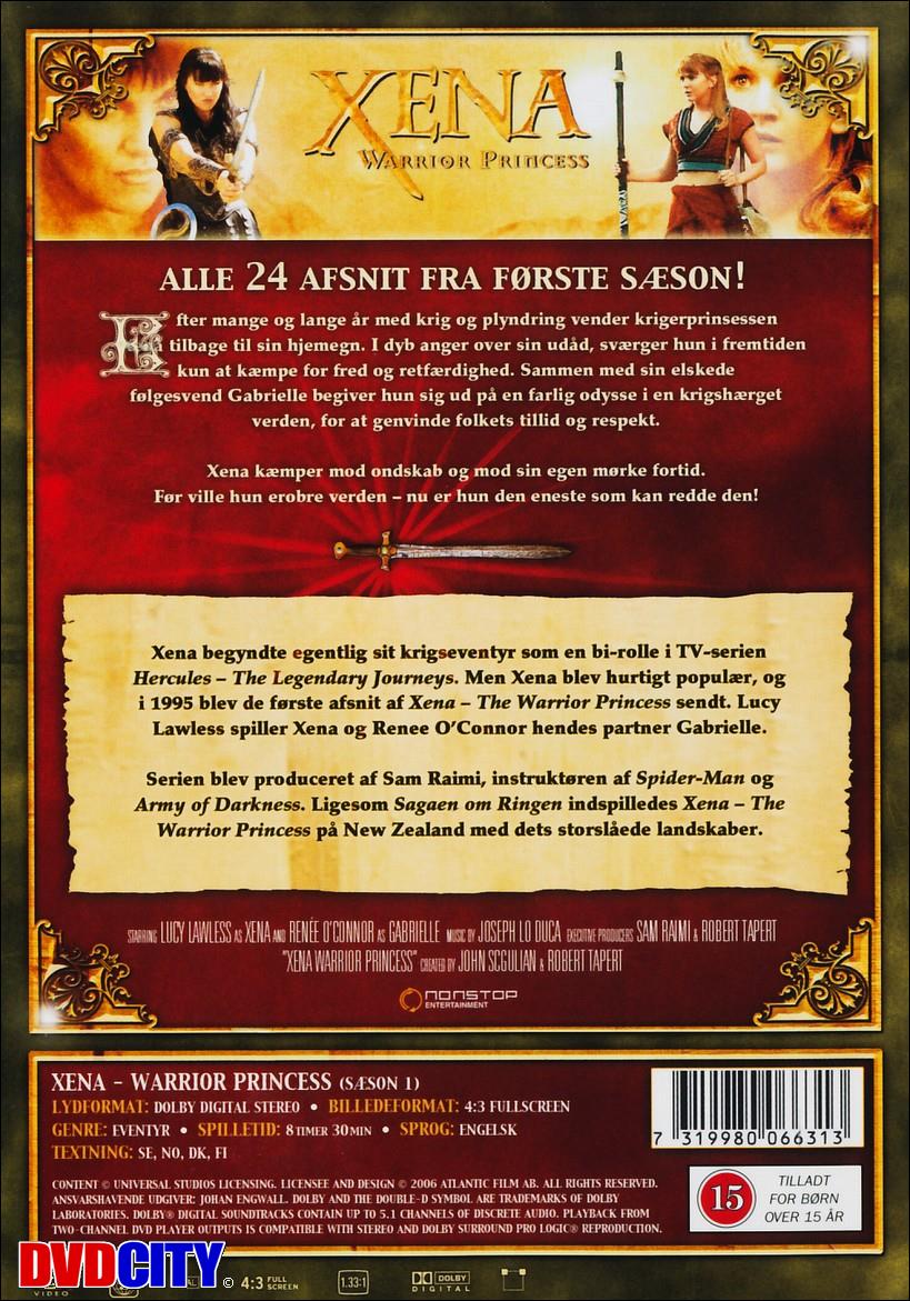 Beskrivelse: [ Dansk Engelsk ] Efter mange og lange år med krig og plyndring vender krigerprinsessen tilbage til sin hjemegn. I dyb anger over sin udåd, sværger hun i fremtiden kun at kæmpe for fred og retfærdighed. Sammen med sin elskede følgesvend Gabrielle begiver hun sig ud på en farlig odysse i en krigshærget verden, for at genvinde folkets tillid og respekt.