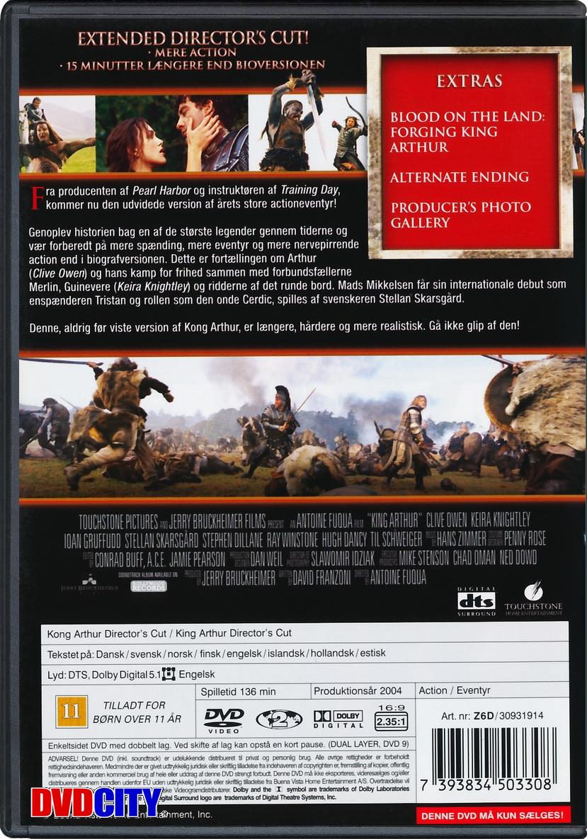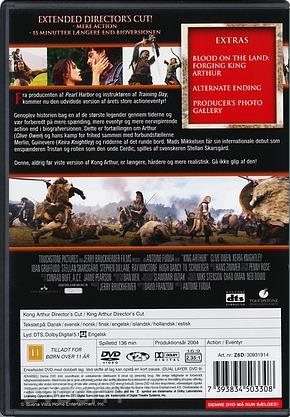 Beskrivelse: [ Dansk Engelsk ] From the producer of Pearl Harbour and the director of Training Day experience the extended director''s cut of this hard hitting action epic, prepare for more thrills, more adventure and more intensity as the heroic true story behind one of history''s greatest legends explodes onto the screen. It is the valiant tale of Arthur (Clive Owen) and his bond of brotherhood with Lancelot (Ioan Gruffudd) and the loyalty of the Knights Of The Round Table as they fight for freedom and those they love. Also starring Keira Knightly as Guinevere, this never before seen King Arthur is a longer, grittier and more explicit motion picture- don''t miss it! | Ekstra features: