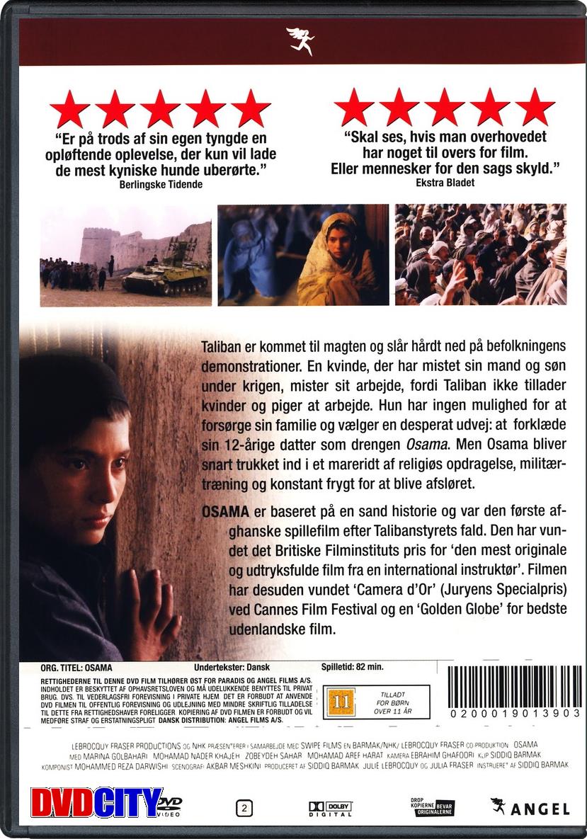 | Beskrivelse: [ Dansk Engelsk ] Osama er baseret på en sand historie og var den første afghanske spillefilm efter Talibanstyrets fald. Den har vundet det Britiske Filminstituts pris for den mest originale film.